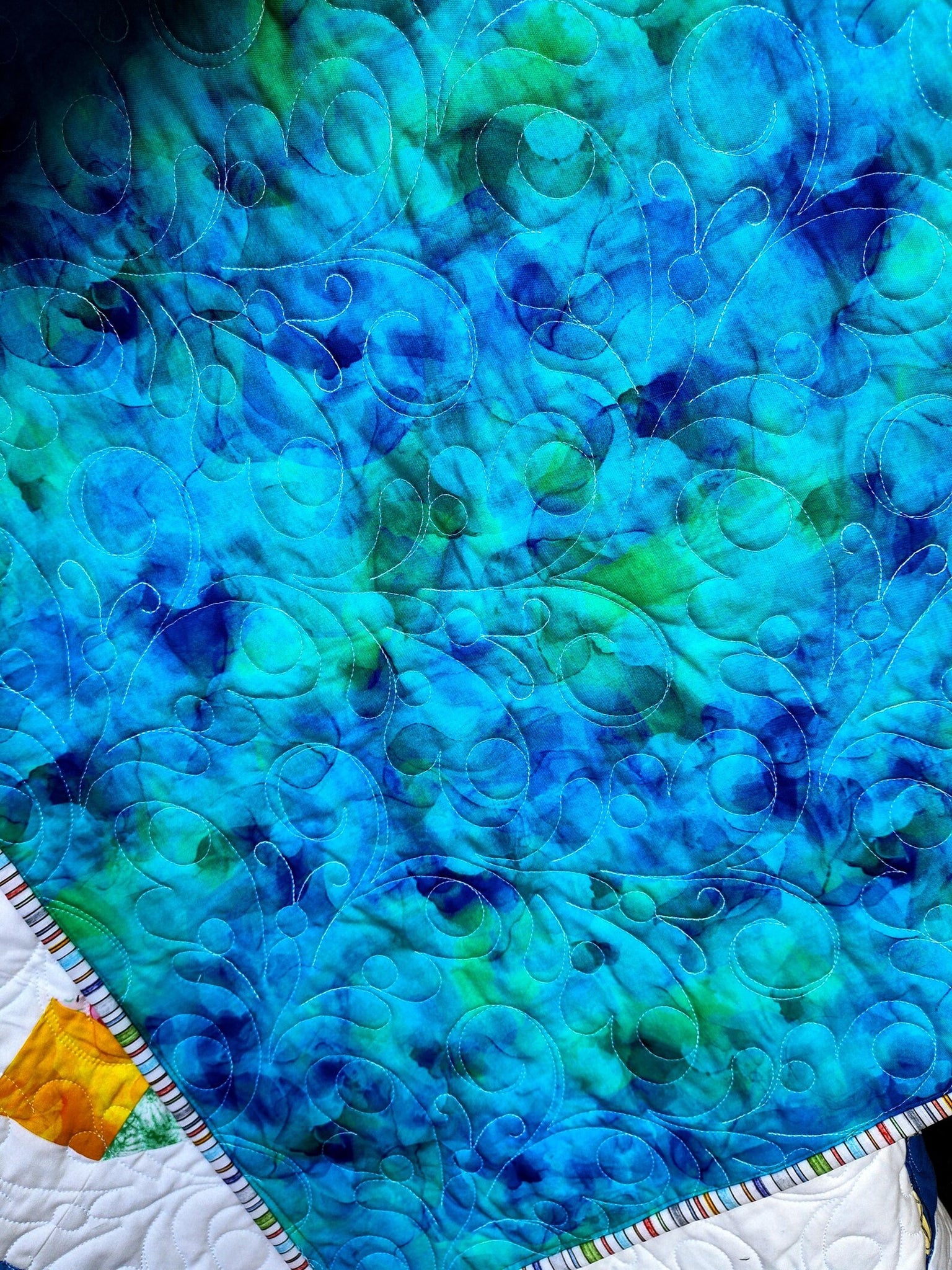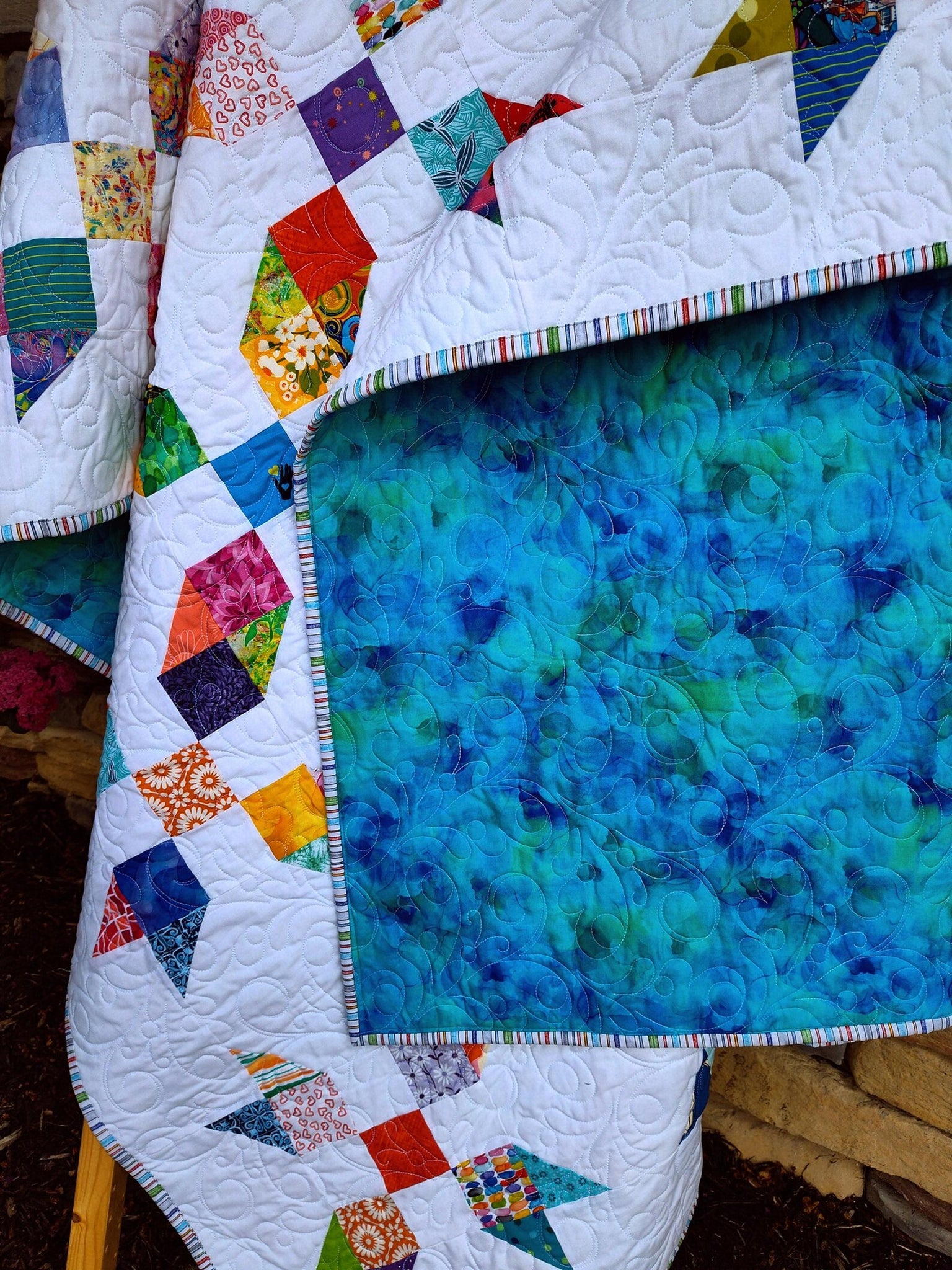 Backing is a beautiful wide cotton, seamless, with gorgeous watercolor print by QT fabrics.
