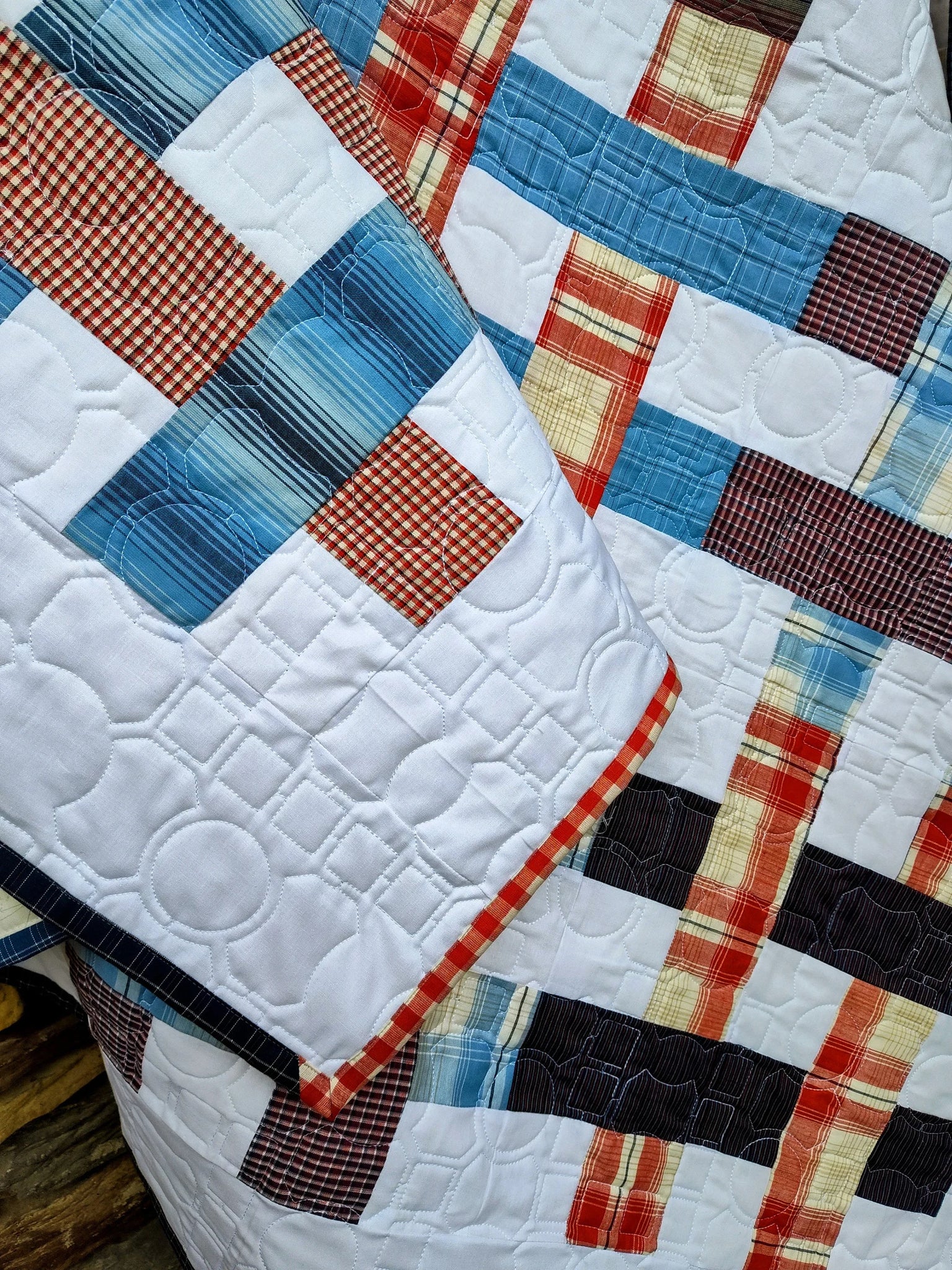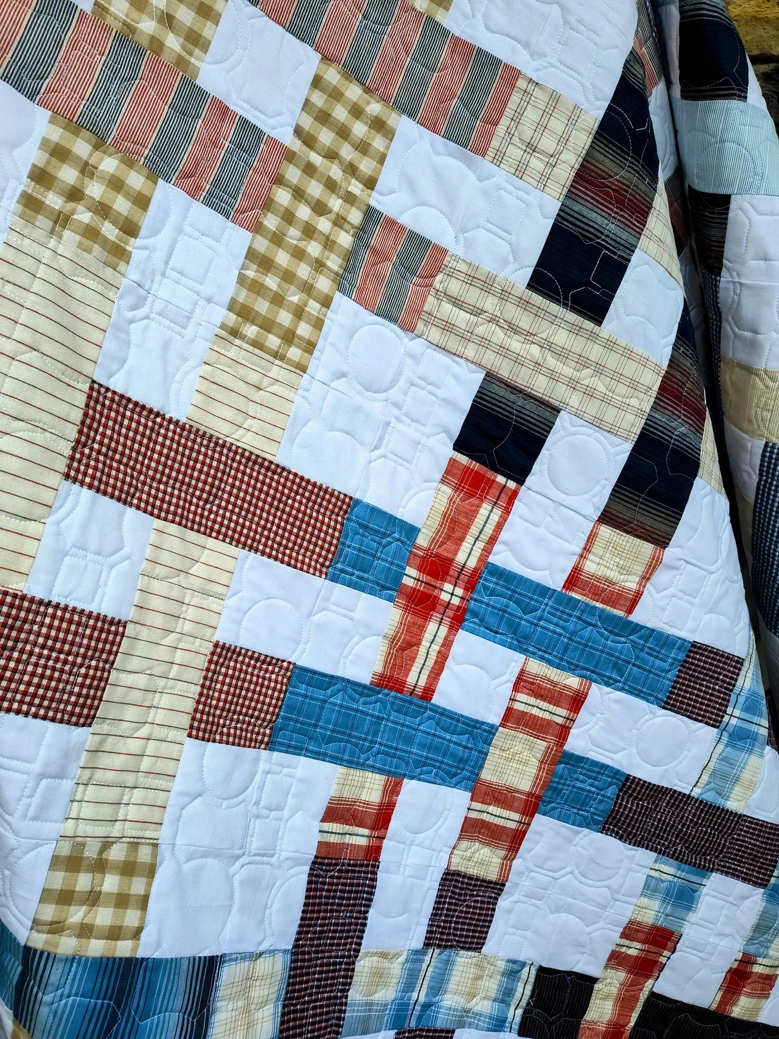 Look at this gorgeous pattern and how interesting the woven fabrics look in it! it's a great idea for a memory quilt made with shirts.
