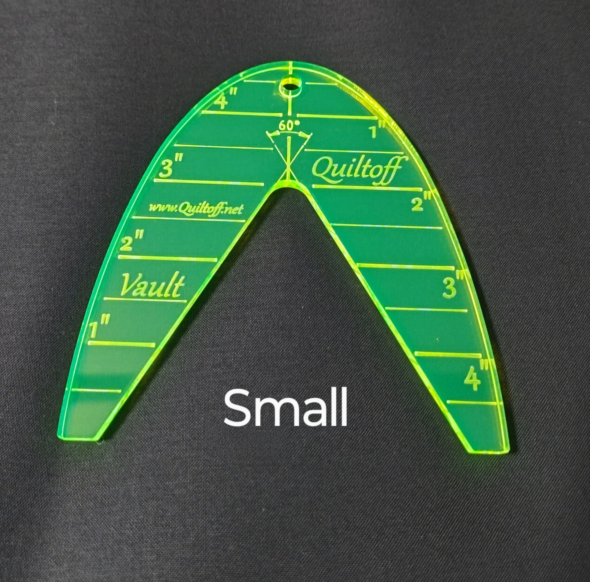 Template to create accurate curve lines, designs for sashing's, blocks, borders. Great rulers for both longarm quilters and domestic HIGH SHANK machines. Works great for basic ruler work. The rulers come in green neon color and three different sizes. These ones are wonderfully seen on a quilt, so you will forget about losing your clear ruler. Reversible. Overall dimensions: Large ruler - 7" x 5.5", Medium 6" x 5.25" Small ruler - 5"x4.5". The material is high-quality 1/4" thick acrylic, non-toxic with beautiful laser cutting and engraving.