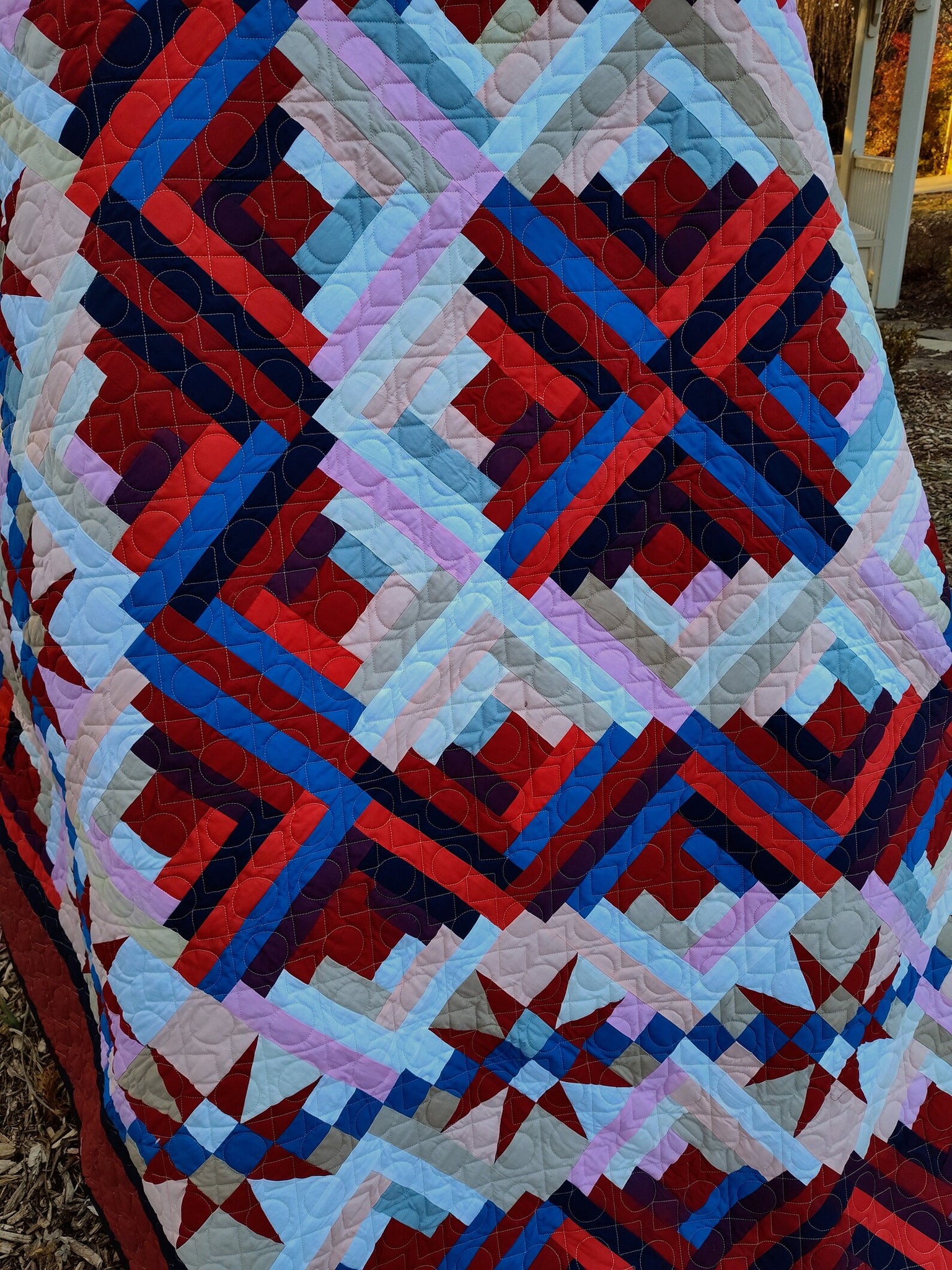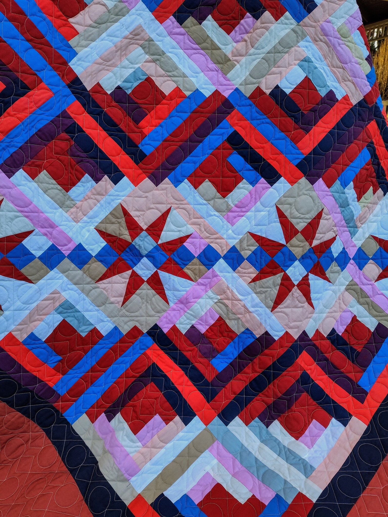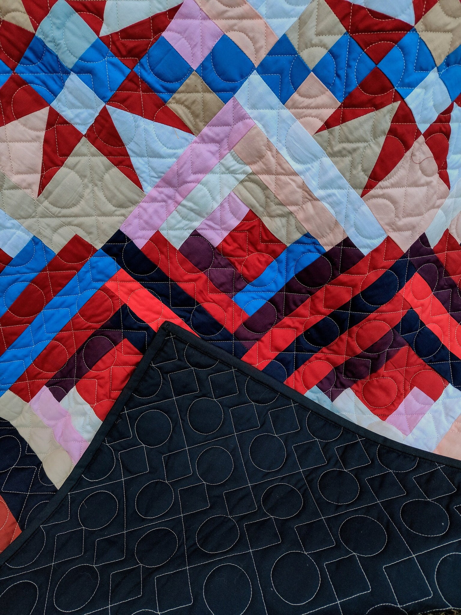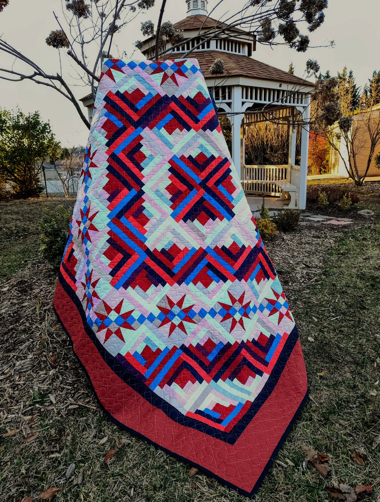 Traditional, but bright! If you love traditional quilt patterns but want to add some color to your home, this might be a quilt for you! Beautiful solids of jewel colors, log cabin blocks, stars and modern quilting - what not to love about this quilt?