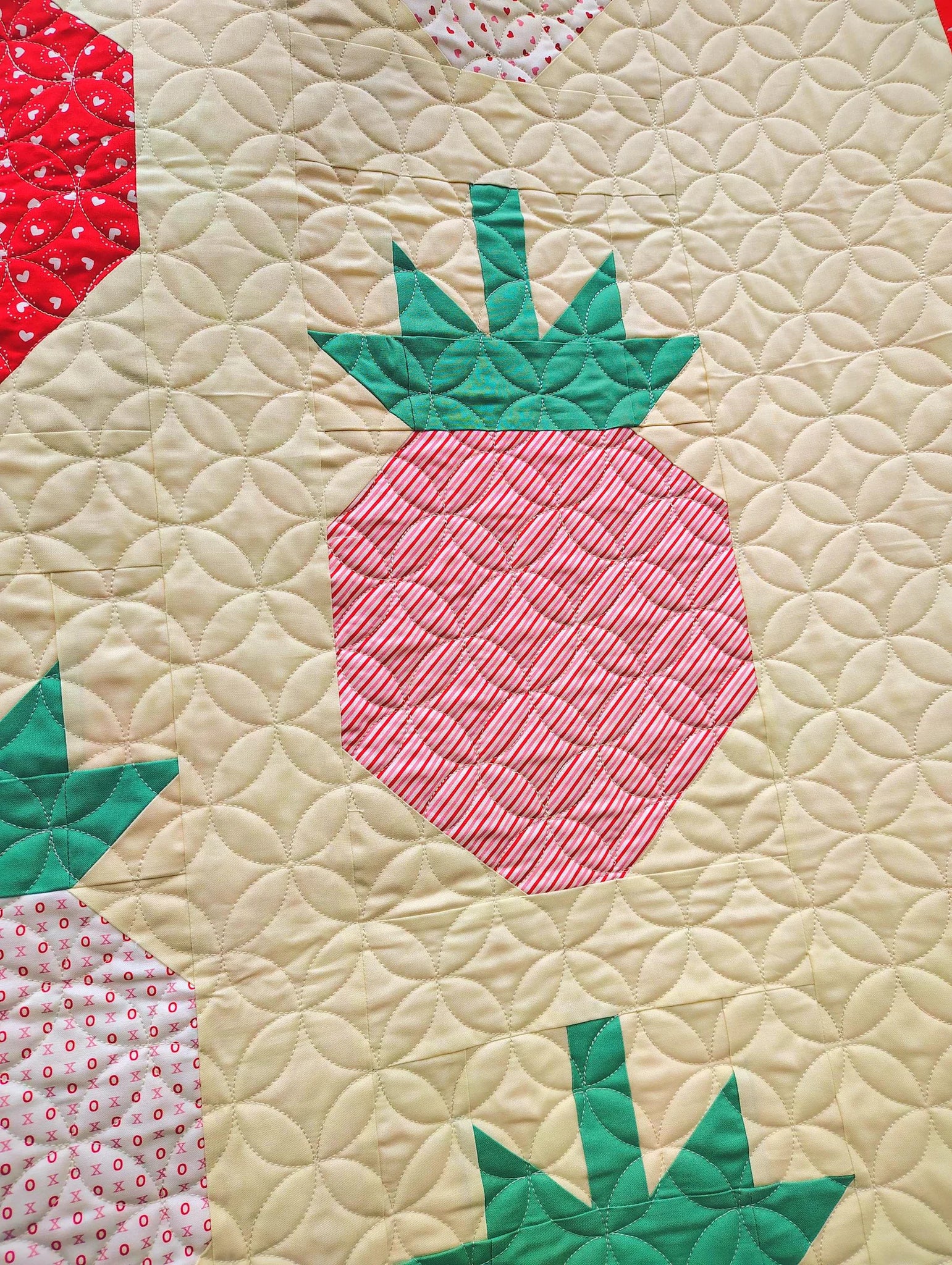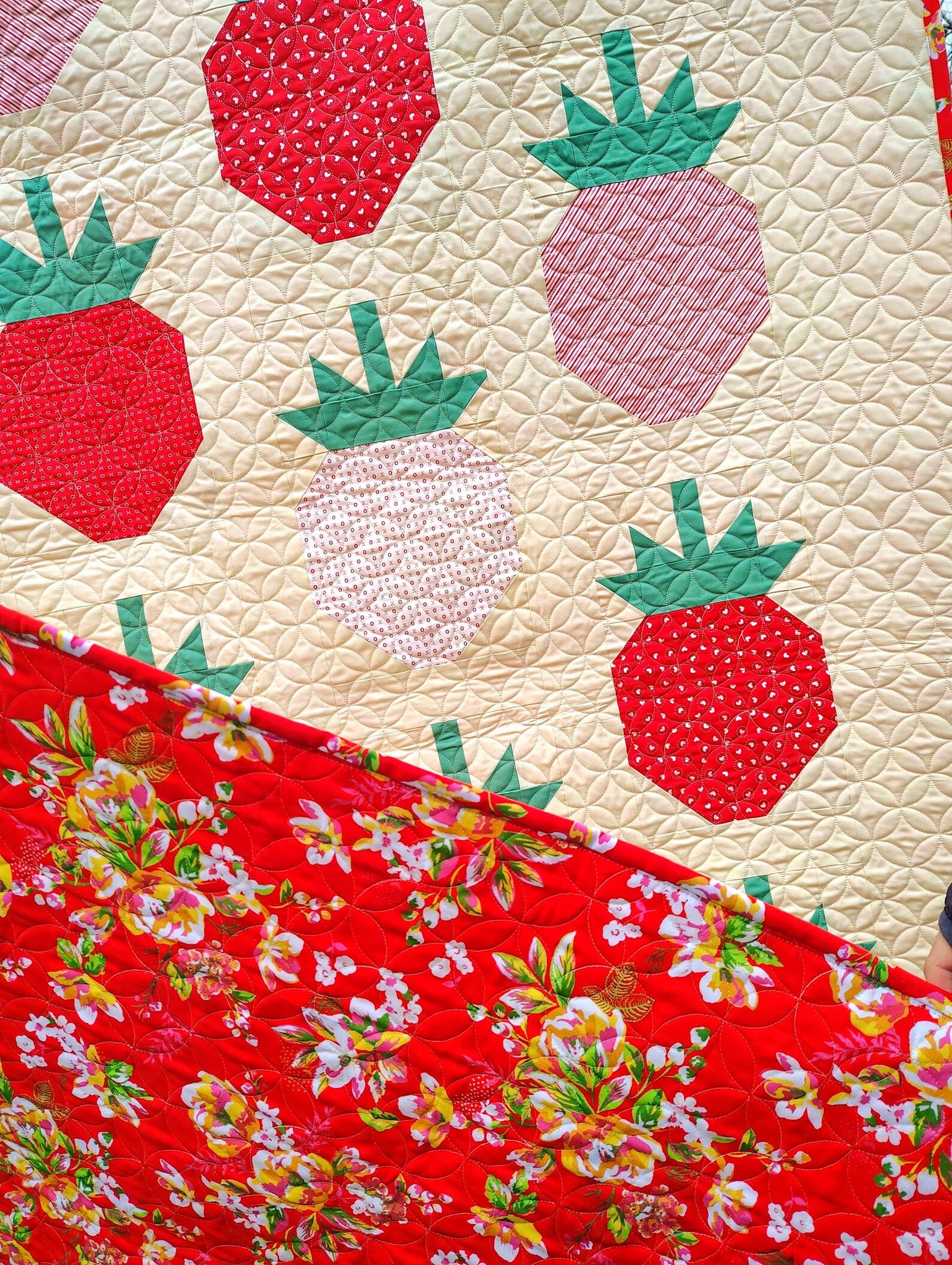 Handmade Strawberry Quilt ā Modern Design with Traditional Orange Peel Quilting š