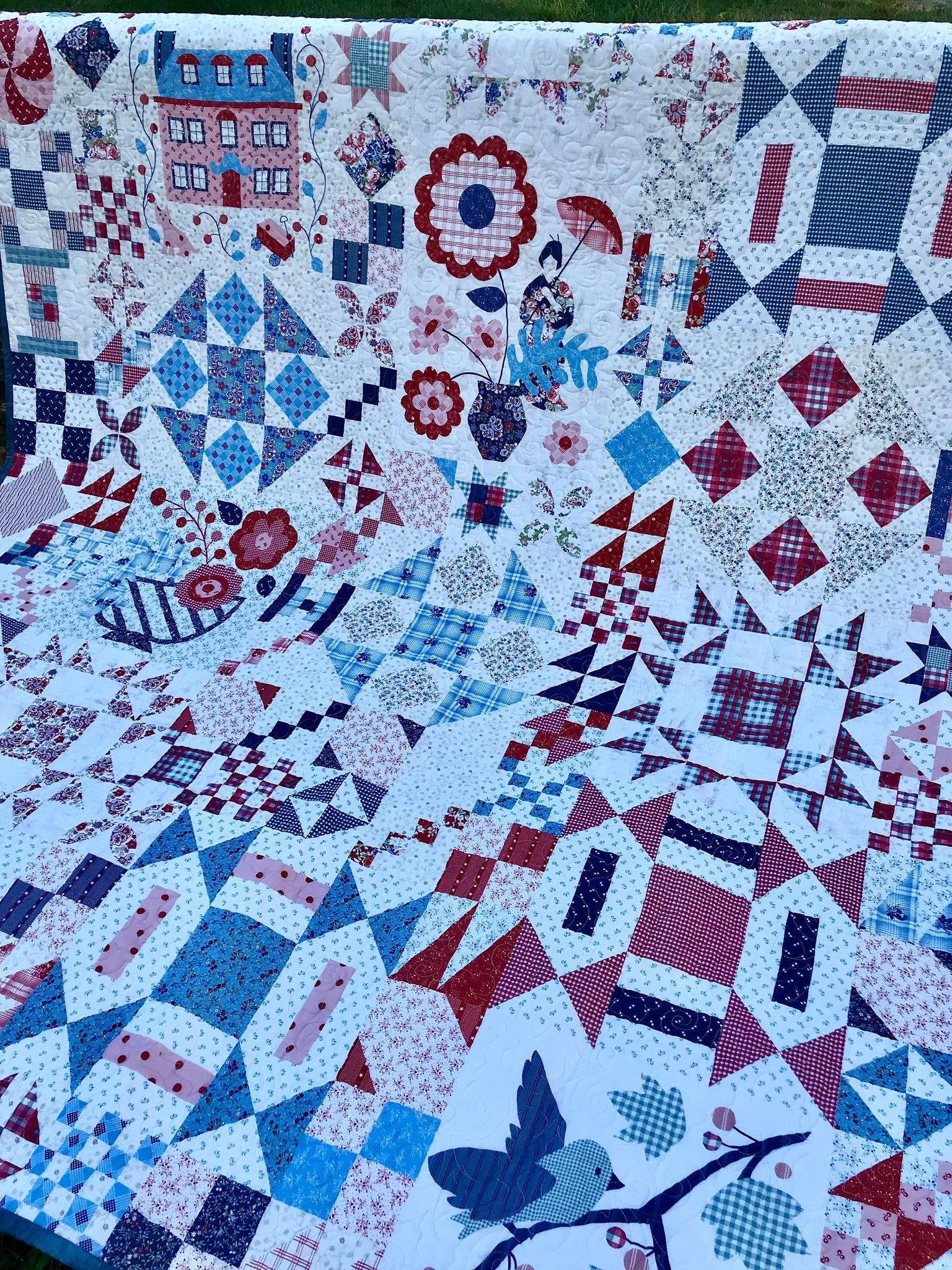 Available now: Beautiful sampler cheater quilt FULL size