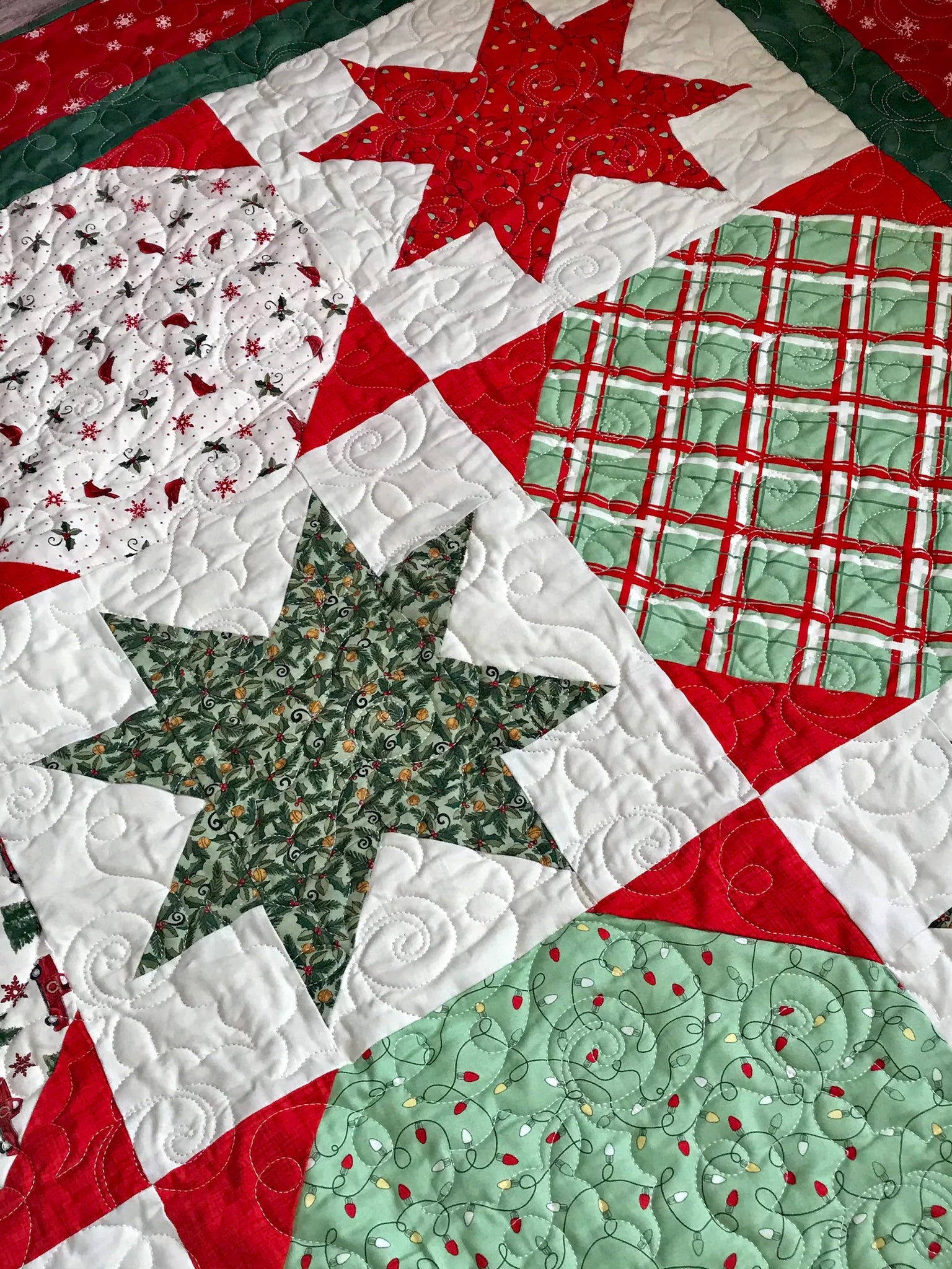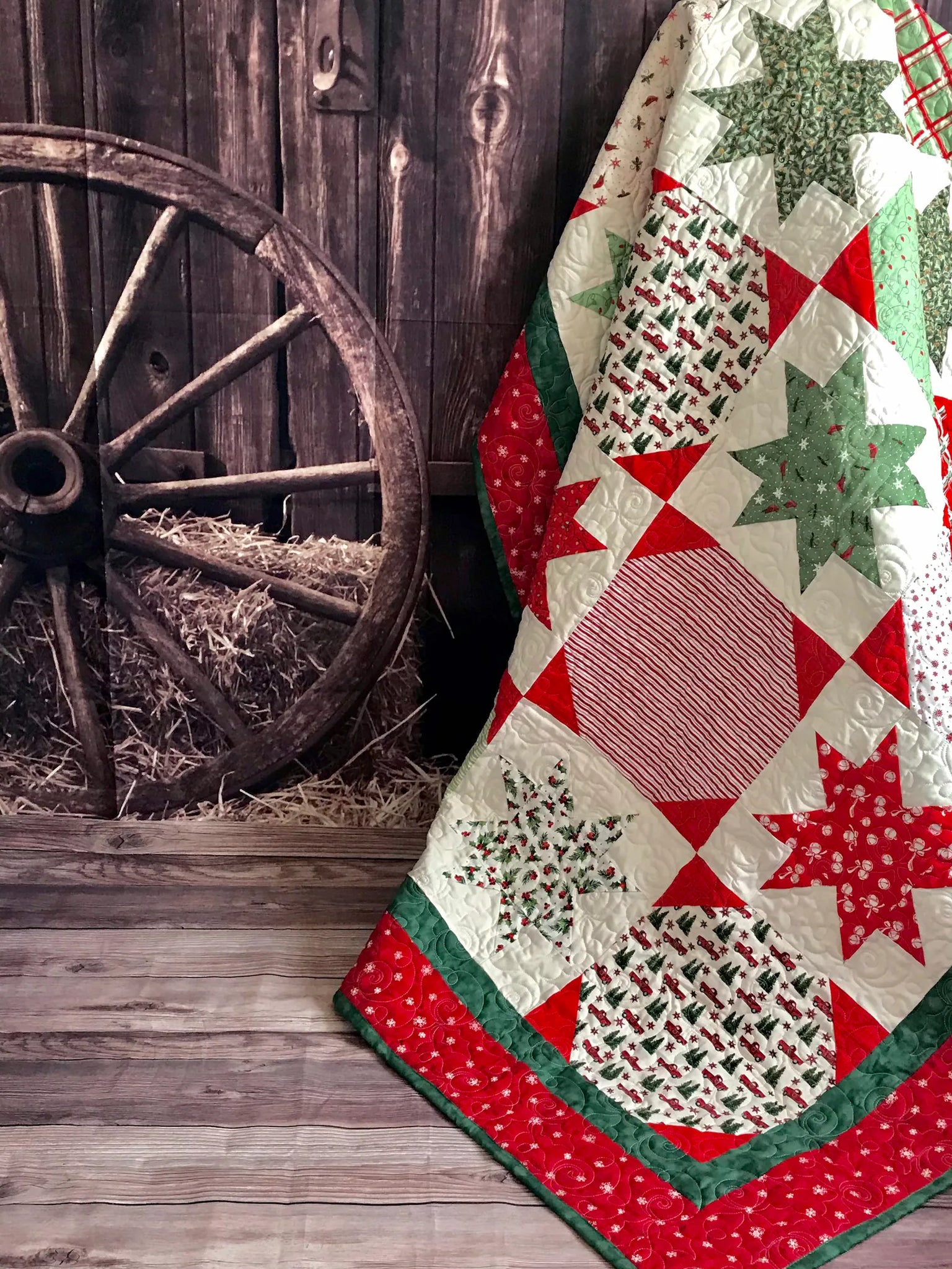 • Load image into Gallery viewer, Christmas quilt, Stars, vintage prints.