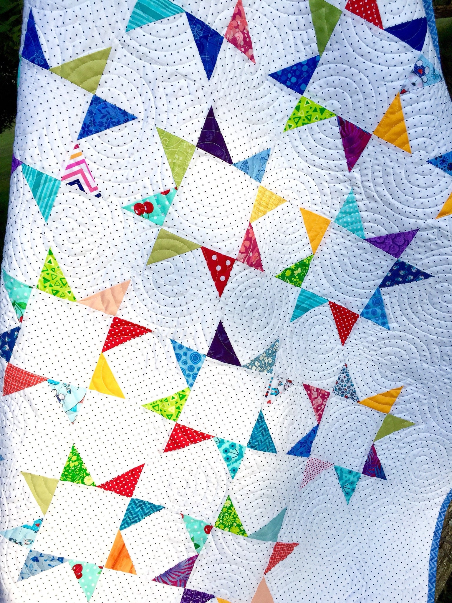 Stylish, bright, modern, and very fresh quilt available for sale! Pieced and quilted by me.